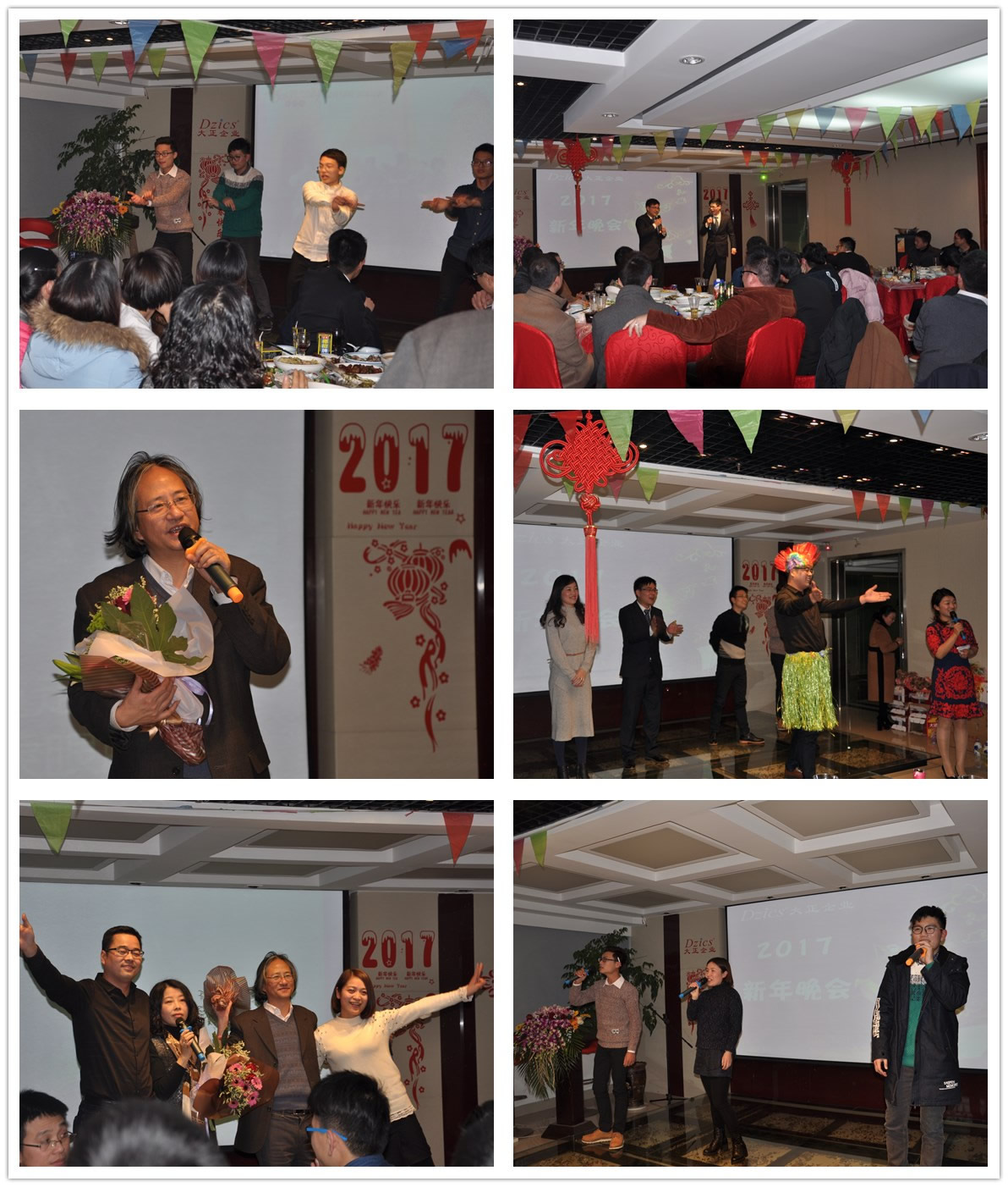 本届年会晚宴中,穿插了丰富多彩的节目表演,有喜气洋洋的歌曲《好日子》、活力四射的舞蹈《大王叫我来巡山》、相声《吹牛》、情意绵绵的《红尘情歌》、HIGH翻全场的《洗刷刷》……把整个年会现场氛围推向了高潮,最后大家齐跳手语操,场面温馨而感动,为本次年会画上了圆满的句号。